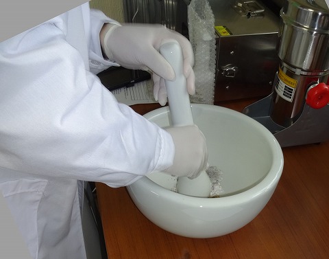 ピンセットや磁石を使用して、すべて手作業で取り除いた上で乳ばちに移します。